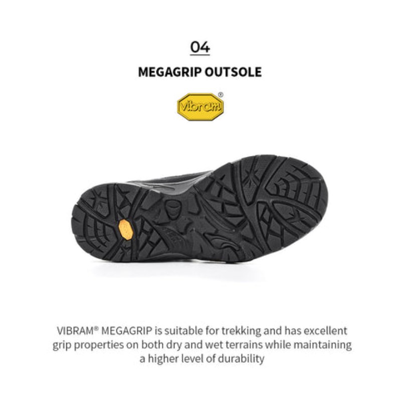 These are ankle-high hiking boots. SuperFabric® material with excellent wear resistance is used, and high-strength toecap is reinforced for outdoor activities in harsh environments. In addition, the Vibram® MEGAGRIP outsole is applied to show the best grip.