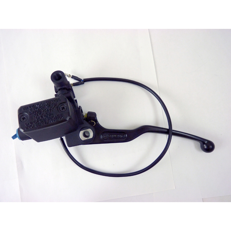 The Brembo PS 12 Black axial clutch master cylinder is designed to provide optimal modulation, smooth response, and greater precision in clutch operation. The Ø 12 mm piston ensures progressive and consistent action, improving riding comfort and gear shift responsiveness. The fixed black lever offers a secure and ergonomic grip, ensuring full control. The integrated reservoir simplifies installation and provides better fluid management. The black anodized aluminum body guarantees wear resistance, lightweight durability, and a sleek sporty design.