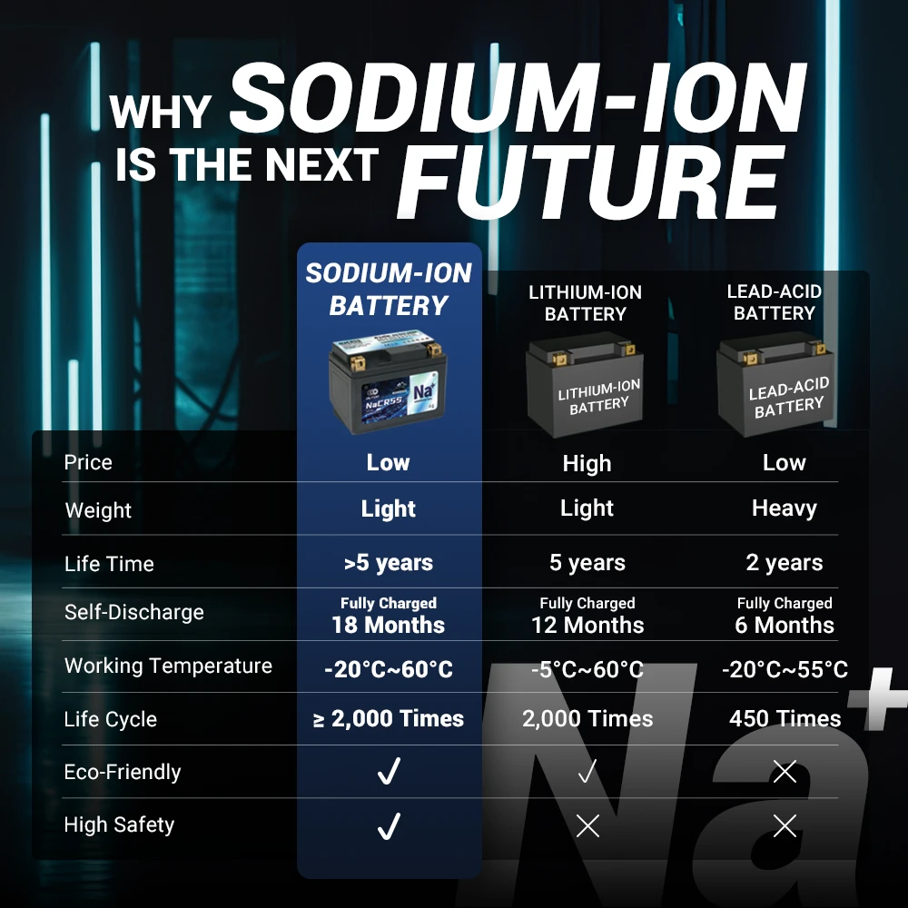 The sodium-ion battery is emerging as a game-changing innovation for motorcycles. With its lightweight design, long lifespan, excellent safety, and strong performance in extreme temperatures, it checks all the boxes for modern two-wheel mobility.