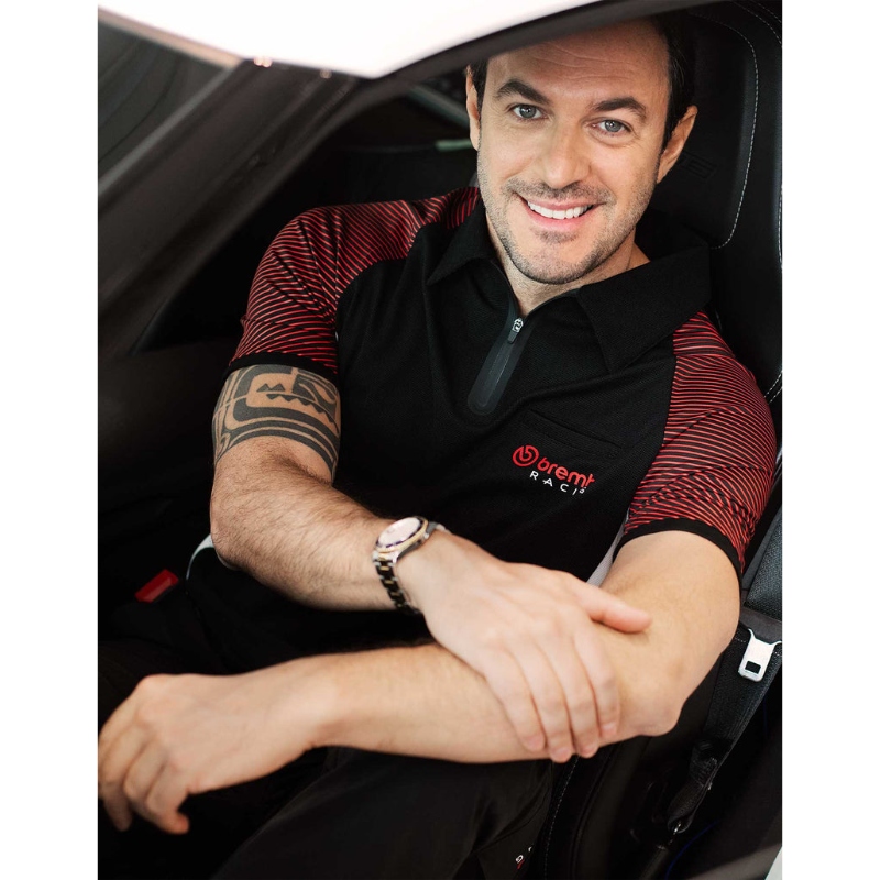Black Polo Pullover with red and white finishes. Waterproof zipper, mesh fabric for better breathability.