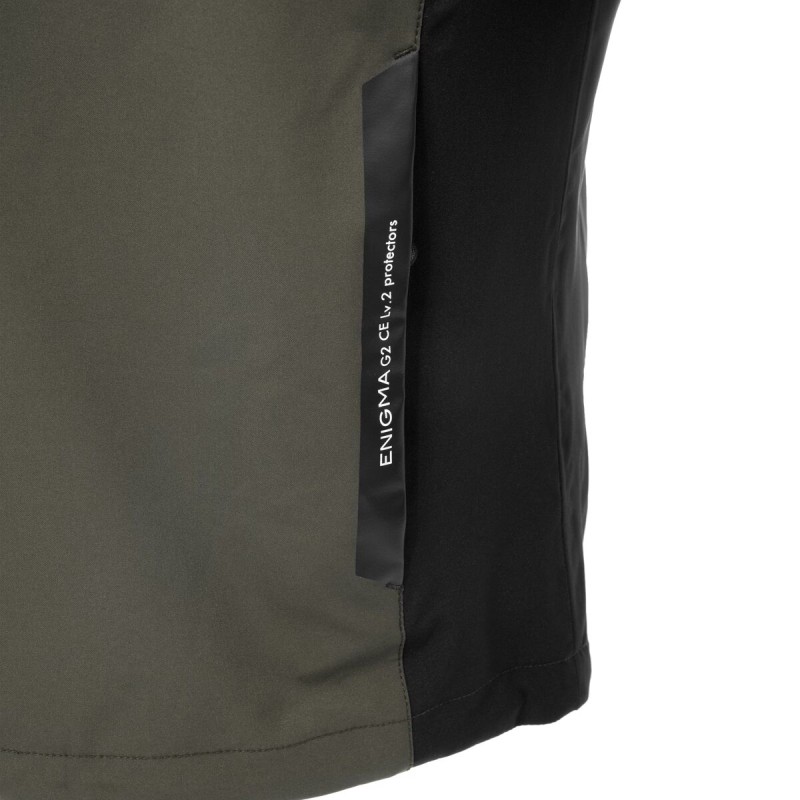 Outdoor-style riding parka made entirely of breathable, waterproof fabric. Easy to use in everyday situations, with strategically placed reflectors to enhance visibility at night. Front and rear ventilation allows for temperature adjustment. Standard equipment includes ENIGMA G2 soft protectors (CE Level 2 certified) on the shoulders, elbows, and chest for excellent breathability and impact absorption, and a lightweight, highly breathable honeycomb EVA pad on the back.