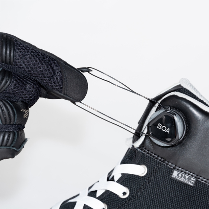 The BOA system allows for easy and speedy attachment and detachment even when wearing gloves by operating the dial and guide.