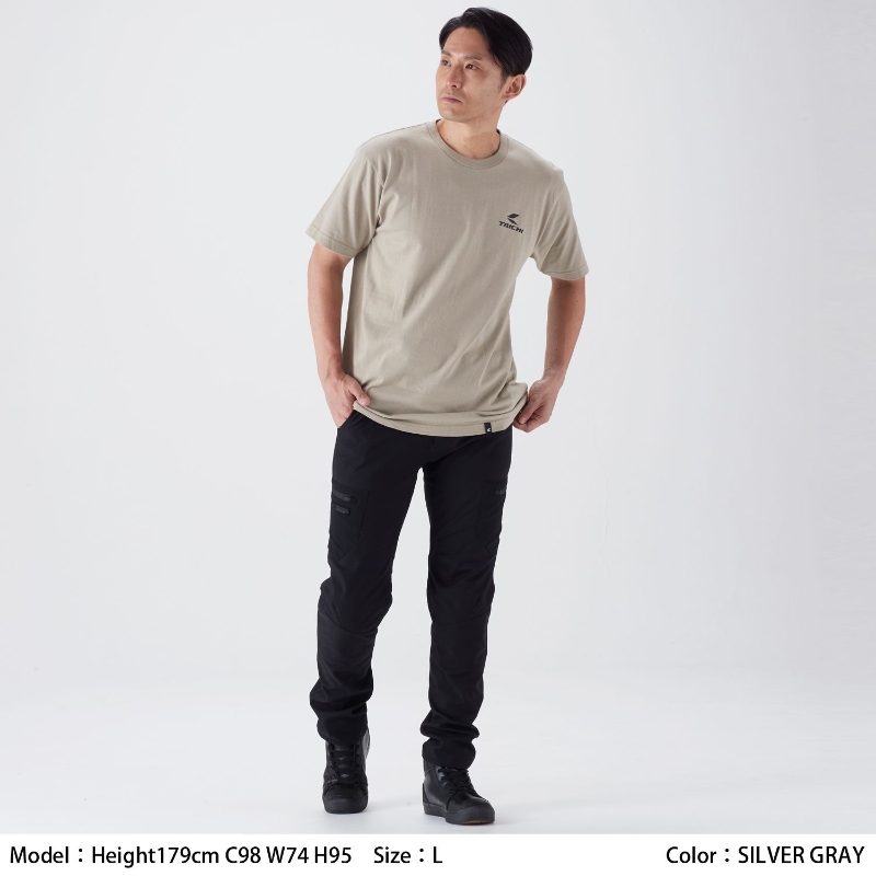 • The base T-shirt is made from a slightly thick 5.6 oz. fabric, giving the overall silhouette a stylish finish.