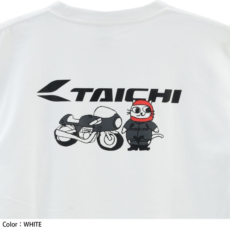 • The back features a loose, hand-drawn design of a cafe racer and cat.