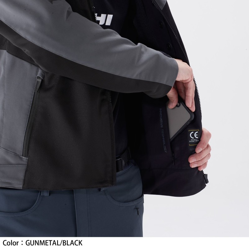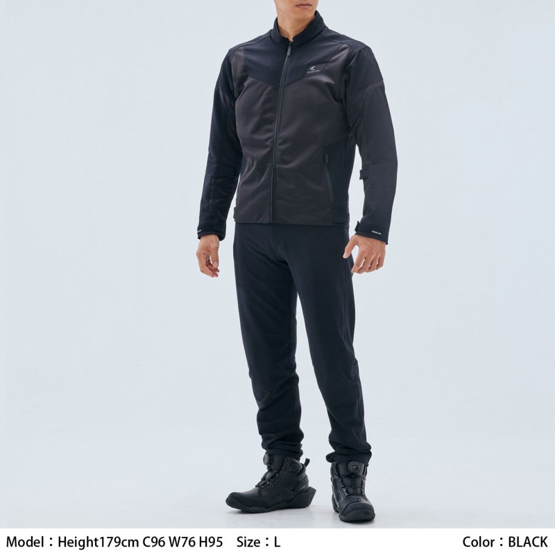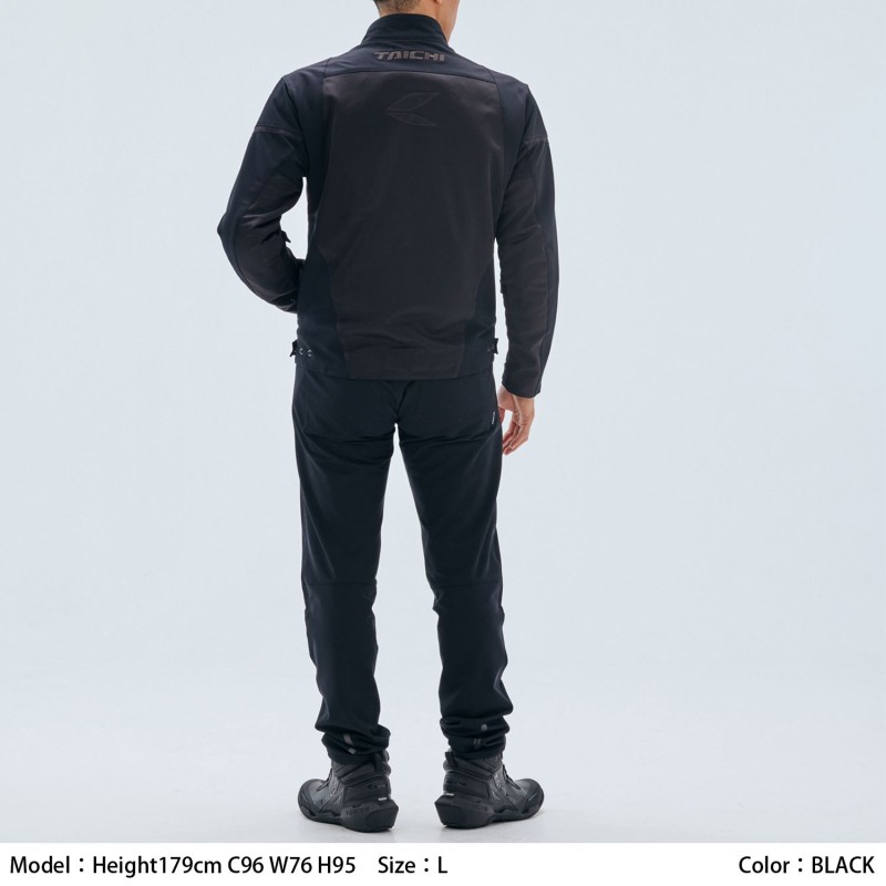 A mesh jacket with a sports concept that uses fabric with excellent breathability and stretchability, and has an embroidered design in various places to enhance the texture. Protectors are standard equipment on the chest, shoulders, elbows, and back, so you can easily wear various protectors.