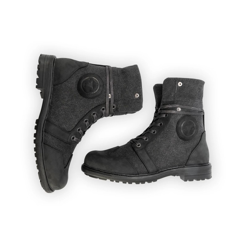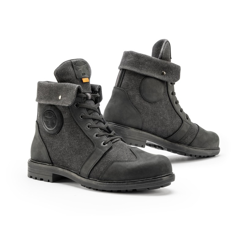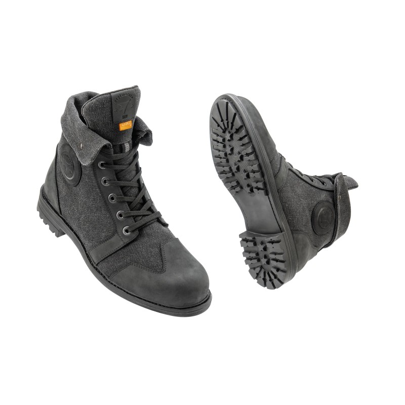 This urban motorcycle boot features breathable fabric and leather overlays, waterproof and breathable lining, and a turn-up collar with clip-on buttons to adjust height. D3O® and PU internal malleolus protectors on both sides and a leather shifter guard area make this a comfortable, high-performance shoe.