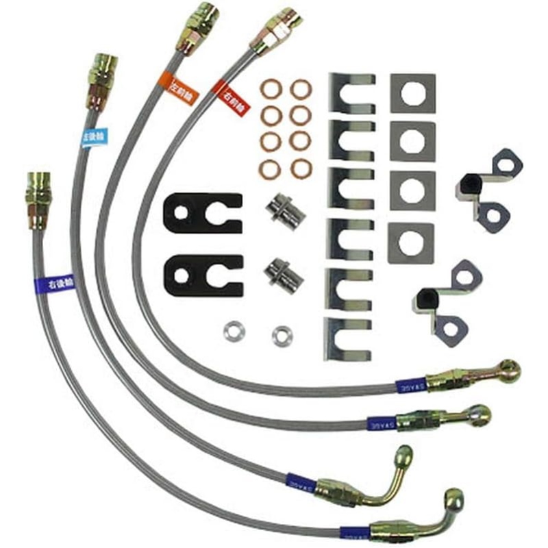 Unique skirt & damper construction with sleeves covers the collar for durabilityIn addition, the hose end has a rotatable fitting shape that makes it easy to remove the screws that occur during installation work.The hose uses Dupont Teflon hose inner with a stainless steel mesh outer and custom PVC coating.The hose inflation is reduced to ensure a precise touch on the brake and provides more precise brake control.